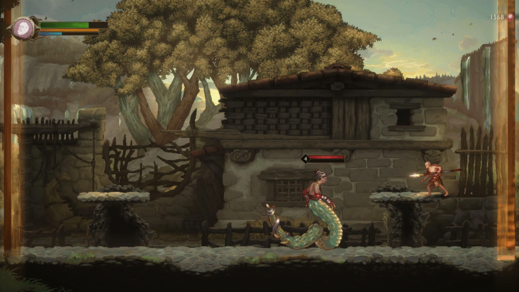ولكن إذا كنت تواجه أعداءً أقوى، فستحتاج إلى الضغط المستمر على زر R1 لشن هجوم روح (spirit attack). هذه الهجمات تسبب ضرراً مباشراً أقل، لكنها تسبب قدراً متوسطاً من ضرر الصعق (stun damage)، والذي يمكنك رؤيته يتراكم في الشريط الموجود أسفل صحة العدو. بمجرد امتلاء ذلك الشريط، يمكنك الضغط على زر triangle لتنفيذ إعدام فوري للعدو بما يسمى Brutal Kill.