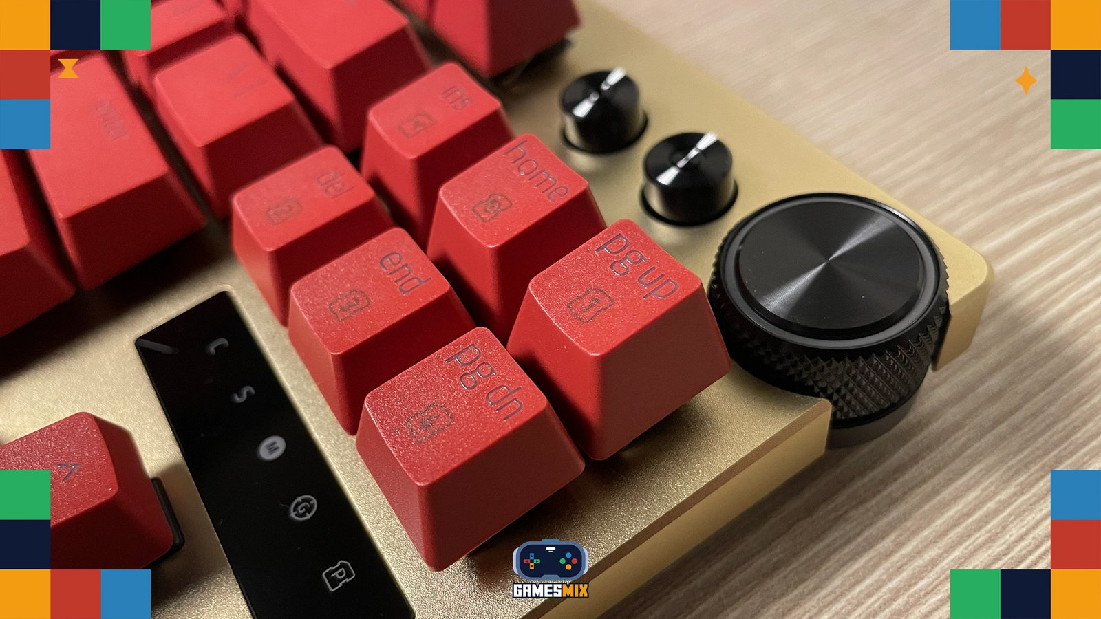 الأزرار الجانبية تأتي بلون أحمر يتماشى مع الهوية البصرية للمجموعة، وهي بارزة بشكل كافٍ ليسهل الوصول إليها أثناء اللعب دون أن تكون بارزة بشكل يسبب ضغطات غير مقصودة. عجلة التمرير تأتي بسطح مطاطي محزز يمنح تحكمًا أفضل أثناء الاستخدام.