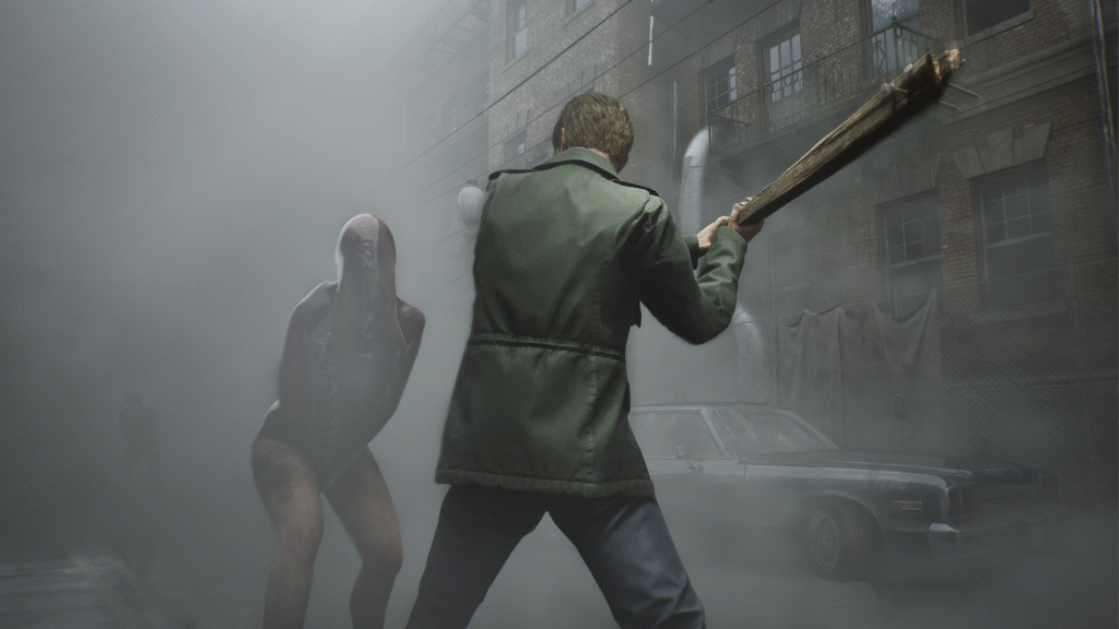 التصميم الصوتي يجعلك دائماً على حافة التوتر. صوت تشويش الراديو (Radio Static) الذي ينبهك لوجود أعداء قريبين يعتبر عنصراً كلاسيكياً لا يزال فعالاً جداً في رفع مستوى الأدرينالين، حيث يضغط على طبلة أذنك ويدفعك إما للهروب أو المواجهة. أصوات الوحوش، وصرير المعادن، وخطوات Pyramid Head الثقيلة، كلها مصممة لتجعلك تشعر بعدم الأمان في أي لحظة.